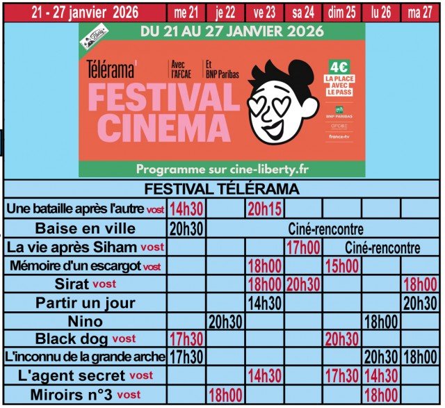 Actu ciné, avant première, évènements, découvrez toute l'actualité du cinéma Liberty.